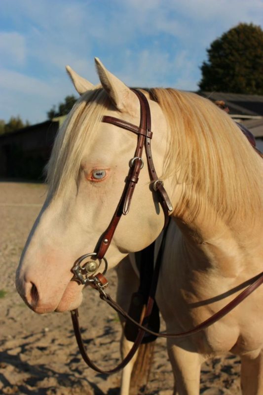 Da Blue ein doppelt aufgehellter Brauner (Perlino) gibt er an seine Nachzuchten IMMER ein Cremgen mit. Hinzu ist Blue 7 Pannel negativ.