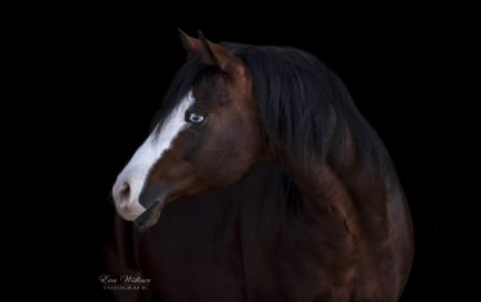 Gunspark ist ein Bay Splash (Brauner) mit blauen Augen. Seine Farbgenetik ist EeAa sowie N/SW2 dazu ist er