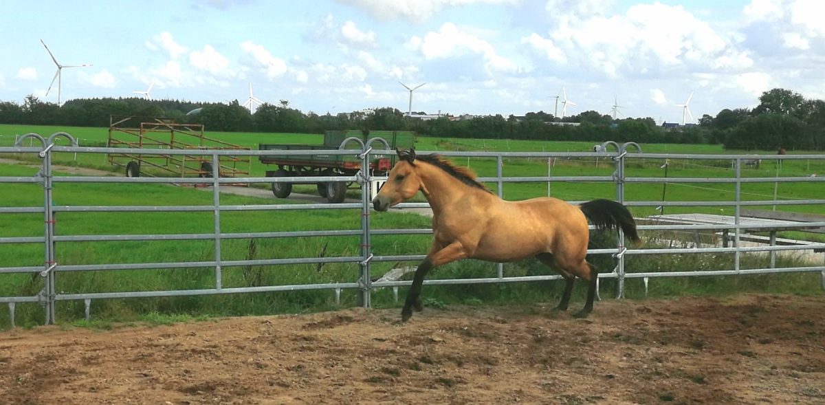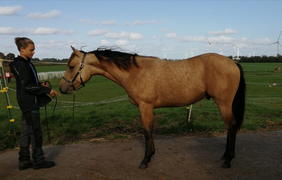 Hier unser „Be Aech Titan“ ein kleiner Quarter Horse Hengst in Buckskin geb. 26 Mai 2018
