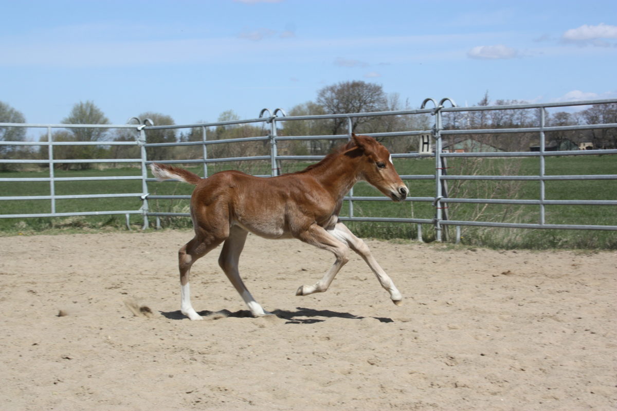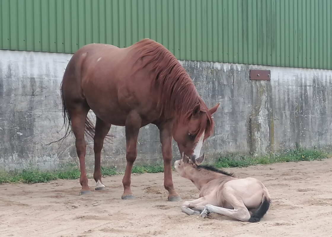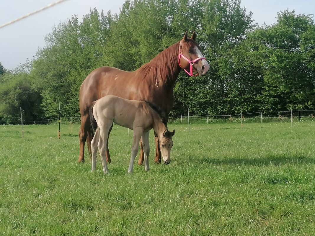 Am 04.04.2021 um 06.00 Uhr früh hat mir meine Hope ein kleines Hengstfohlen geboren. Perseus ist die schönste Osterüberraschung die ich mir hätte erträumen können. Perseus ist ein Fuchs mit drei mal weiß an den Beinen ob beim dritten was weiß wird, wird die Zeit ergeben.