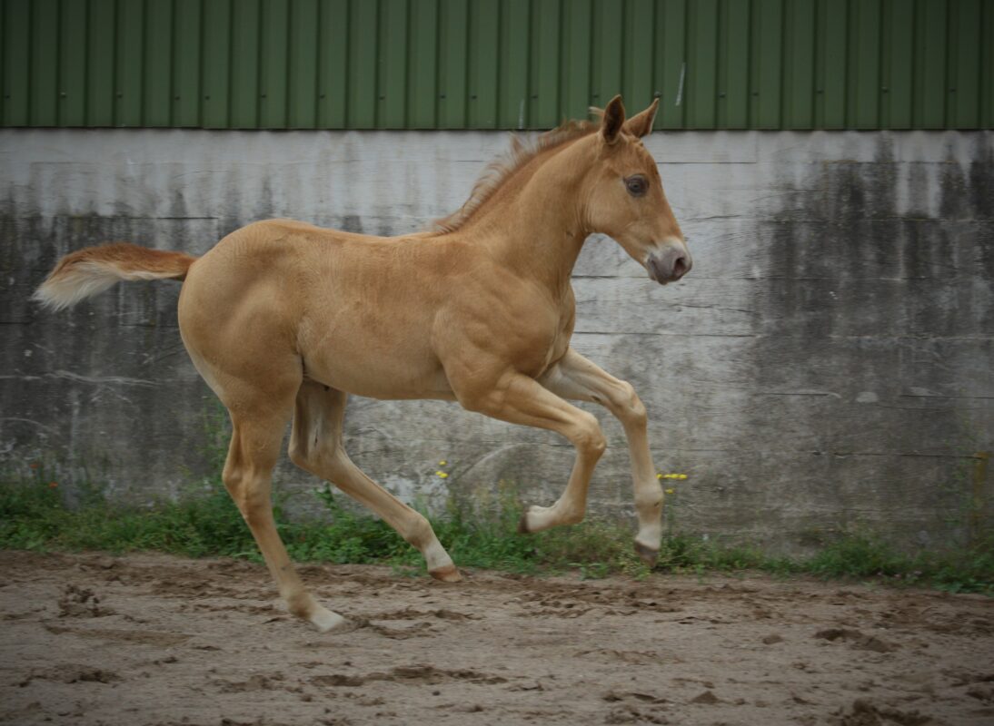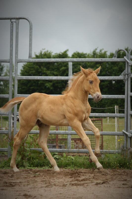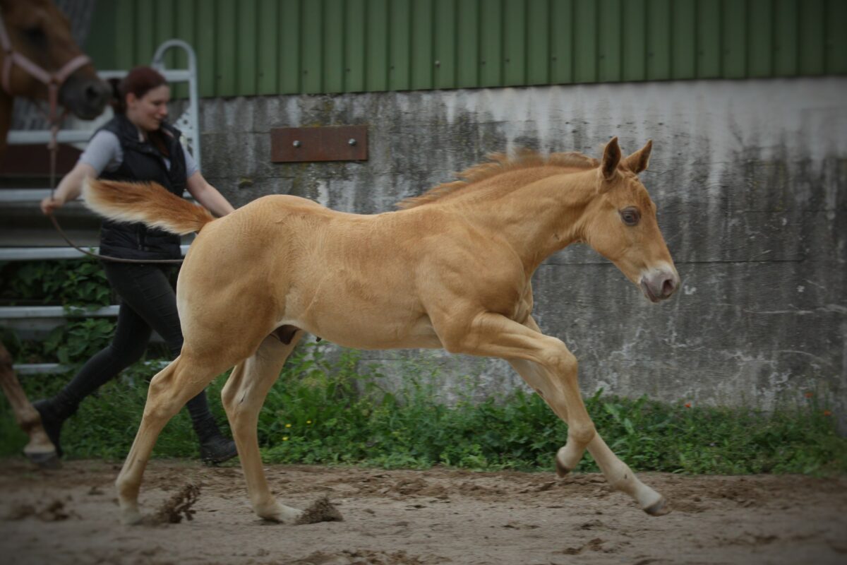 Als kleines Wunder hat Bumbelbee am 08.08.24 eine wunderschöne Tochter auf die gebracht. Die kleine Roya ist das Ebenbild ihrer Mutter, eine kleine Amber Champange Dun Tobiano  Stütchen das 6 Pannel negativ ist und 2 Blaue Augen hat. Teile ihrers Auges können sich eventuell sogar noch ins Grüne verfärben.